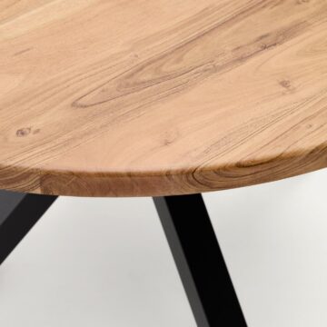 Popestrite svoj jedilni prostor z elegantno okroglo mizo Argo, ki združuje trdnost masivnega akacijevega lesa in sodoben videz črnih jeklenih nog. Miza je popolna izbira za sproščena družinska kosila ali posebne večerje, saj ponuja vrhunske materiale in dovršeno obliko, ki prinaša toplino in modernost v vsak dom.