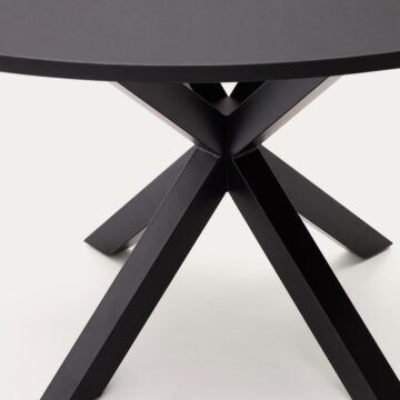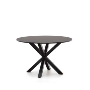 Miza Argo prinaša eleganten in sodoben videz, ki ga ustvarja kombinacija črnega lakiranega MDF in črnih jeklenih nog. Ta miza je idealna izbira za družinske obroke ali posebne priložnosti, saj ponuja prefinjen dizajn in vrhunske materiale, ki dopolnjujejo vsak sodoben dom.