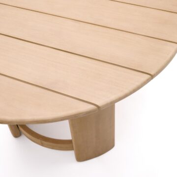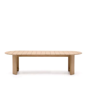 Miza Xoriguer združuje prostornost, udobje in stil v enem kosu pohištva. Izdelana iz 100 % masivnega evkaliptusovega lesa, ta miza s svojimi zaobljenimi linijami prinaša prefinjenost v vaš notranji ali zunanji prostor. Naravni materiali in sodobna zasnova zagotavljajo popolno ravnovesje med funkcionalnostjo in estetiko.
