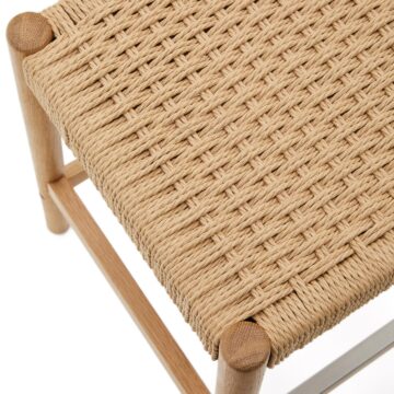 Barski stol Yalia združuje tradicionalno izdelavo in naravne materiale. Masivni hrastov les in ročno prepleten sedež iz papirnate vrvi ustvarjata brezčasen dizajn, ki prinaša toplino in udobje v vsak prostor.