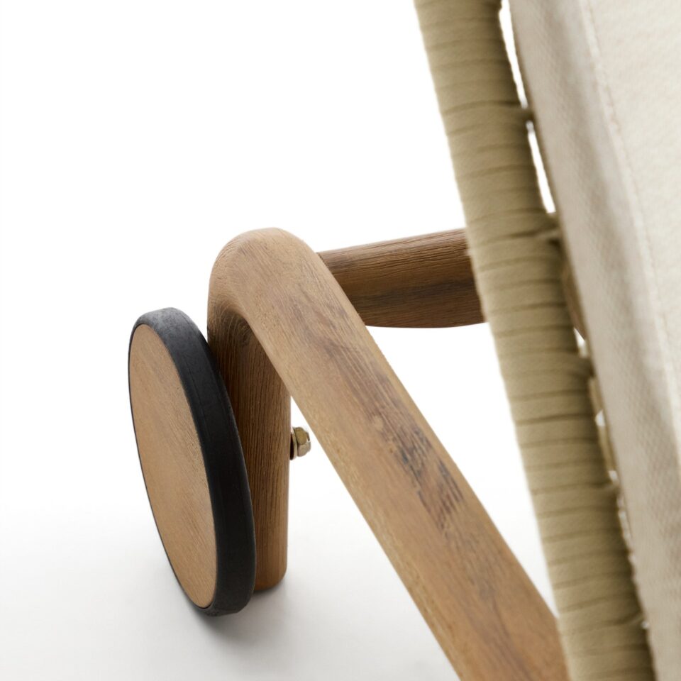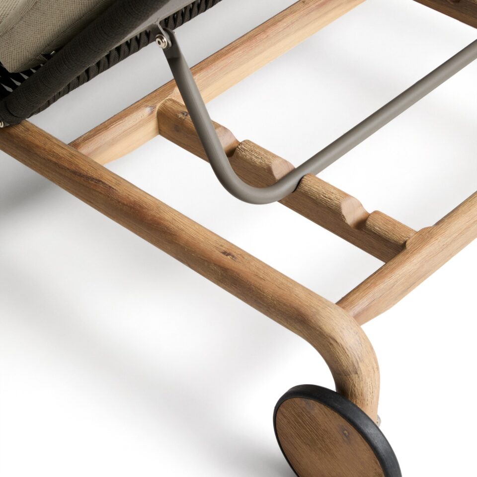 - Praktičnost in enostavno vzdrževanje: Ležalnik vključuje odstranljive blazine za enostavno čiščenje in dnevno nego. Za lažje premikanje je opremljen s stabilnimi kolesi.