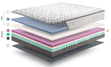 - DRYHIGHSOFT: Supermehka pena, ki preprečuje vdor zunanje vlage v ležišče in omogoča prehod vlage v notranjost (20 mm). Ta sloj hladno-valjane pene bo poskrbel za prilagajanje telesa pred stikom z vzmetmi.