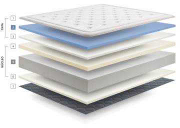 - DRYHIGHSOFT: Supermehka pena, ki preprečuje vdor zunanje vlage v ležišče in omogoča prehod vlage v notranjost (20 mm). Ta sloj hladno-valjane pene bo poskrbel za prilagajanje telesa pred stikom z vzmetmi.