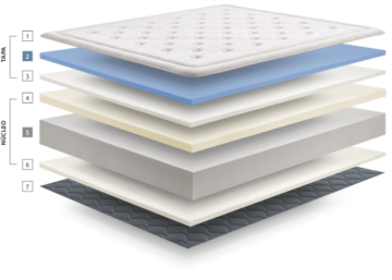 - DRYHIGHSOFT: Supermehka pena, ki preprečuje vdor zunanje vlage v ležišče in omogoča prehod vlage v notranjost (20 mm). Ta sloj hladno-valjane pene bo poskrbel za prilagajanje telesa pred stikom z vzmetmi.