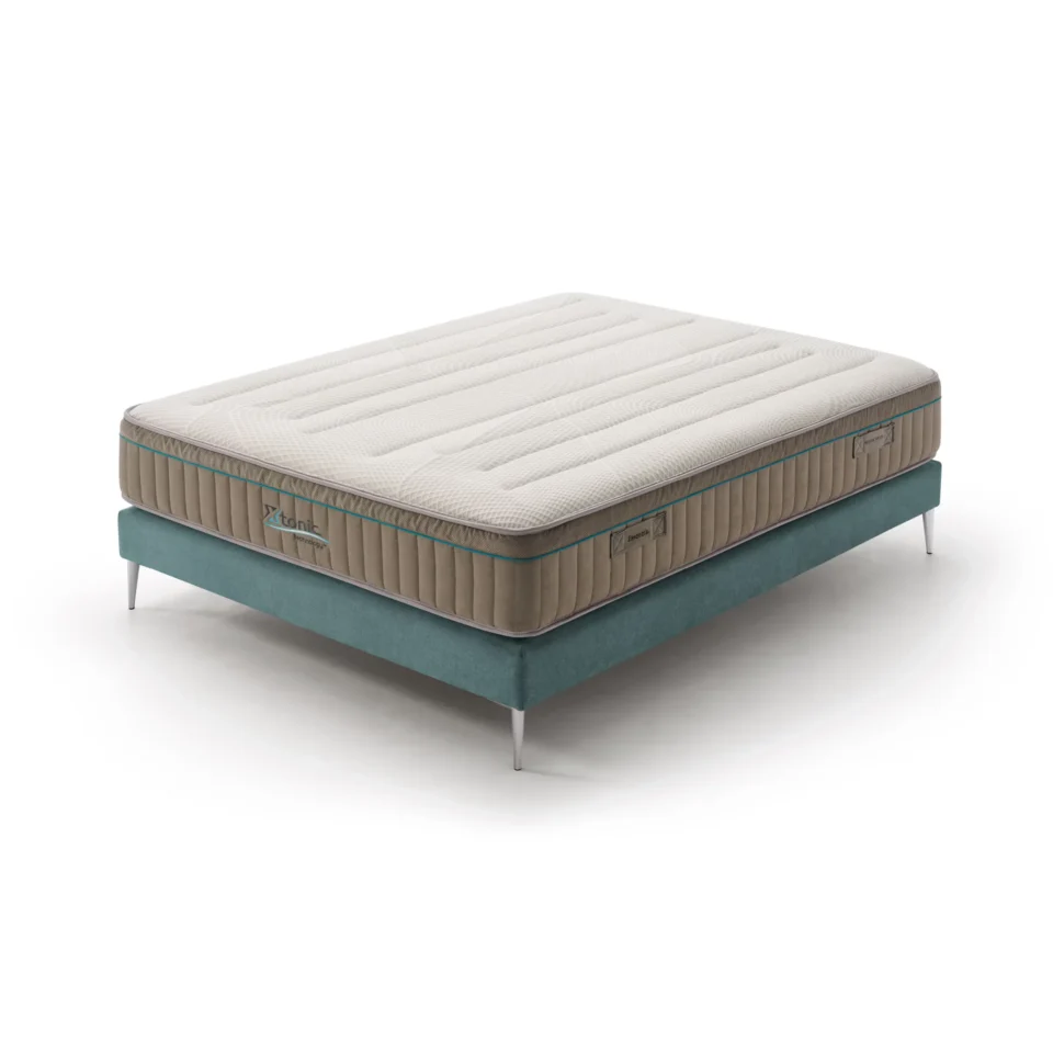 X-Tonic je vzmetnica iz pene, ki je srednje trdote. Ta izdelek je namenjen ljudem z veliko mišično maso, saj se zaradi anatomskega profiliranja in plasti z visoko gostoto vaše telo naravno sprosti. Troslojno jedro pomaga telesu, da se postopoma sprosti in prilagodi, kar poveča cirkulacijo. Spominska pena preprečuje prekomerno kopičenje toplote med počitkom, zmanjšuje premikanje telesa in podaljšuje spanec. Ležišče je visoko 28 cm in na voljo v vseh standardnih dimenzijah. Za vse izven-standardne dimenzije nam pošljite povpraševanje in preverimo pri proizvajalcu.