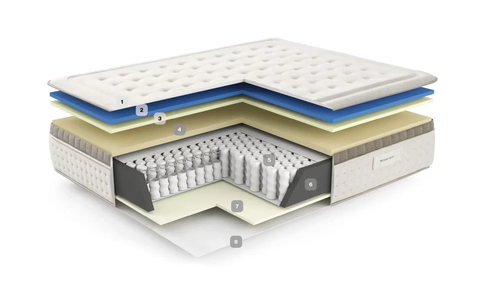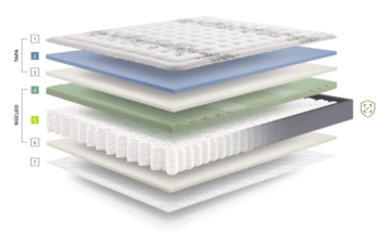 - DRYHIGHSOFT: Supermehka pena, ki preprečuje vdor zunanje vlage v ležišče in omogoča prehod vlage v notranjost (20 mm). Ta sloj hladno-valjane pene bo poskrbel za prilagajanje telesa pred stikom z vzmetmi.