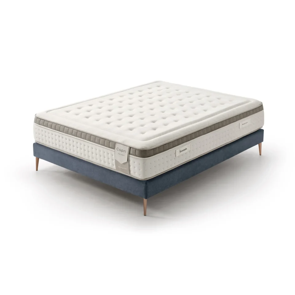 Capri je vzmetnica z žepkastimi vzmetmi, namenjena ljudem, ki iščejo srednje mehko udobje. Ima zgornjo plast spominske pene, ki uravnava našo telesno temperaturo. Nova 3D pena povečuje prilagodljivost vzmeti Progressive Titanium. Ležišče je visoko 28 cm in na voljo v vseh standardnih dimenzijah. Za vse izven-standardne dimenzije nam pošljite povpraševanje in preverimo pri proizvajalcu.