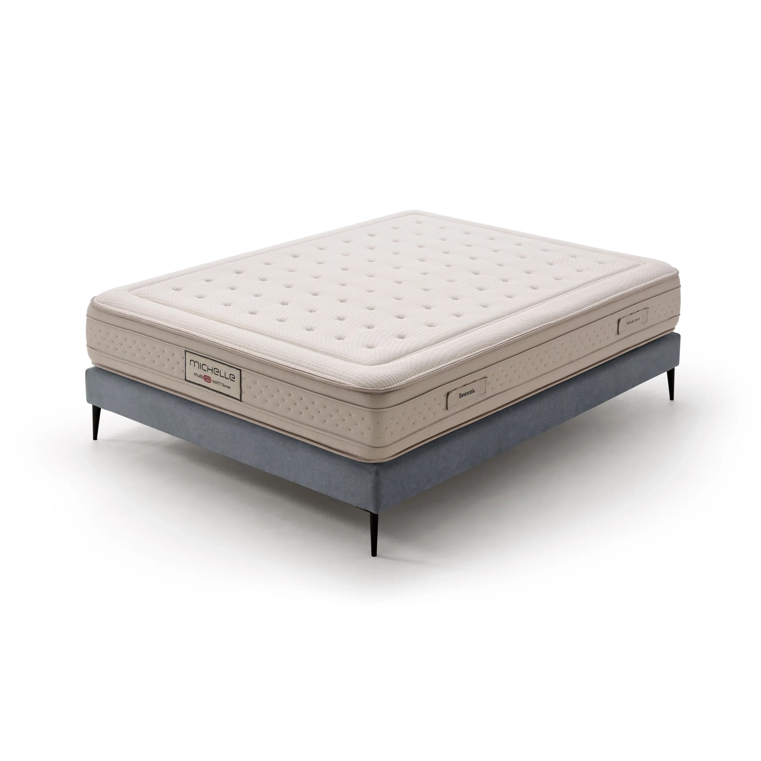 Saint Michelle je vzmetnica z žepkastimi vzmetmi, namenjena ljudem, ki iščejo srednje udobje(trdoto), zahvaljujoč sistemu Multipro 1600 MULTIZONE. Ležišče je sestavljeno iz sedmih različnih con trdote. Kar 1600 Vzmeti iz titana bo zagotovilo maksimalno vzdržljivost in prilagajanje v vsakem trenutku. Ležišče je visoko 28 cm in na voljo v vseh standardnih dimenzijah. Za vse izven-standardne dimenzije nam pošljite povpraševanje in preverimo pri proizvajalcu.