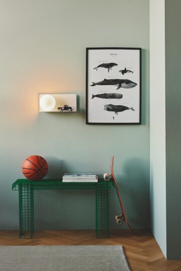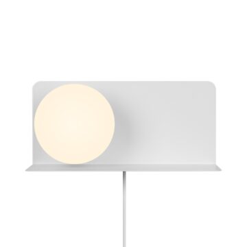 Stenska svetilka Lilibeth združuje elegantno obliko in funkcionalnost. Primerna je za postavitev ob posteljo ali v hodniku, kjer lahko drži pomembne predmete, kot so vaš telefon, knjiga ali ključi. Opalno belo stekleno kupolo zagotavlja prijeten in razpršen svetlobni učinek, kar jo dela tudi idealno izbiro kot nočno svetilko za otroško sobo.