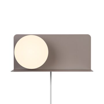Stenska svetilka Lilibeth združuje elegantno obliko in funkcionalnost. Primerna je za postavitev ob posteljo ali v hodniku, kjer lahko drži pomembne predmete, kot so vaš telefon, knjiga ali ključi. Opalno belo stekleno kupolo zagotavlja prijeten in razpršen svetlobni učinek, kar jo dela tudi idealno izbiro kot nočno svetilko za otroško sobo.