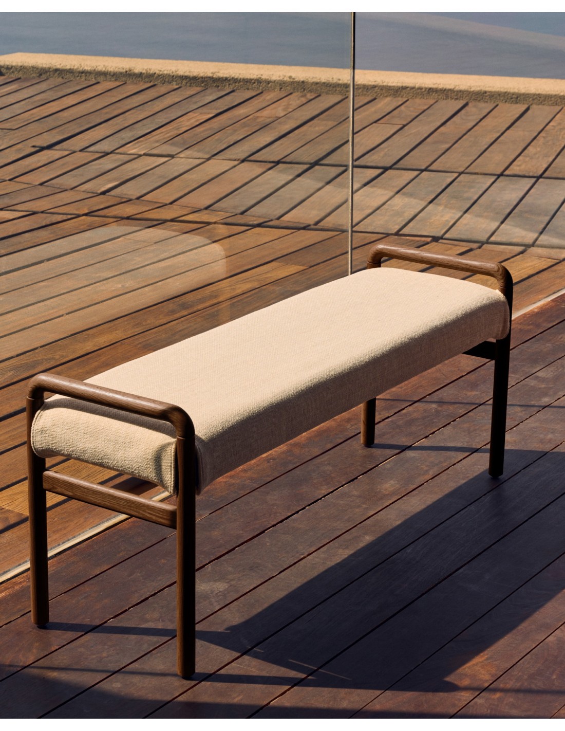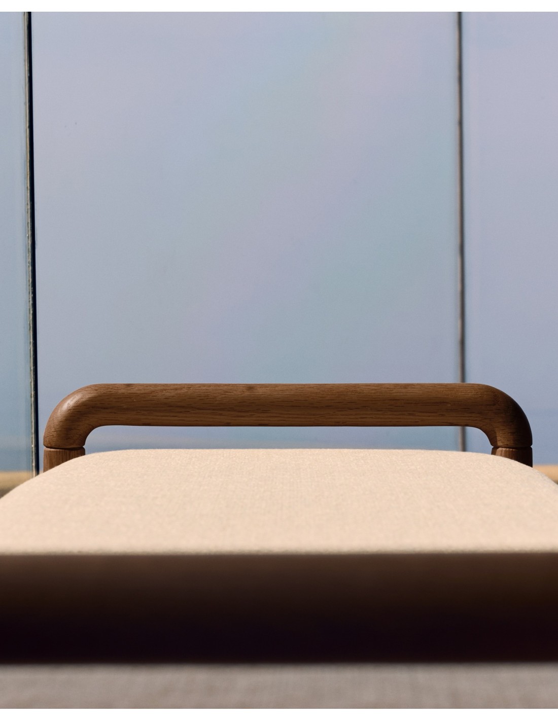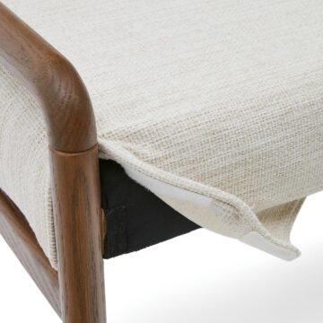 Sedišče dopolnjuje prevleka iz tkanine chenille, ki je snemljiva in omogoča enostavno čiščenje. Okvir iz masivnega hrasta je zelo lahek in zaključen z naravnim oljnim PU-premazom, ki poudari strukturo lesa in mu daje topel videz.