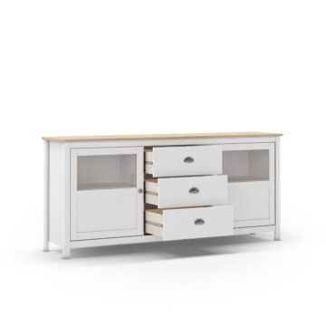 Masivna komoda MISTI združuje funkcionalnost in eleganten dizajn. Izdelana je iz masivnega lesa in ponuja obilo prostora za organizirano shranjevanje. Predali in police omogočajo enostavno shranjevanje oblačil, dokumentov ali drugih predmetov. Zaradi svoje barvne kombinacije se odlično poda v različne interierje, ne glede na to, ali jo postavite v spalnico, dnevno sobo ali predsobo.