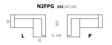 - Dimenzije garniture: 252 × 160 × 104 cm