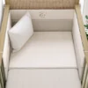 Spalni komplet Millo Baby, ki je sestavljen iz devetih kosov, vključno z odejo, zaščito za glavo, zaščito za noge, sprednjo in zadnjo zaščito, prevleko za vzglavnik, okrasno blazino, odejo iz flisa in rjuho brez gume, je primeren za uporabo z otroškimi posteljicami velikosti 80×130 cm.