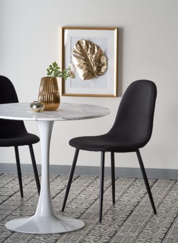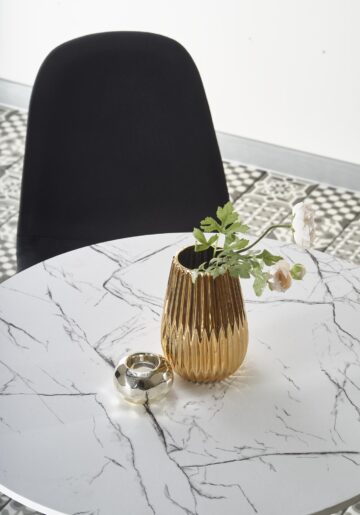 Miza Denver je izredno modernega dizajna, večnamensko oblikovana. Uporabimo jo lahko kot jedilno mizo, konzolno mizico ali celo kot barsko mizo. Mizna plošča je izdelana iz laminiranega MDF-a v barvi belega marmorja. Podnožje je kovinsko, prašno barvano v belo barvo. Dimenzije: Ø:80 H:73 cm Teža: 13 kg