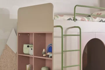 Pograd postelja Nora iz kolekcije otroških sob Nora je več kot le prostor za spanje – je celoten igralni svet, zasnovan za male pustolovce. S svojim modernim skandinavskim dizajnom spremeni vsako otroško sobo v prijetno oazo za sanjarjenje, igro in sprostitev. Posebnost postelje je prijetna igralna jama, ki otrokom omogoča domišljijsko igro in ustvarja prostor za umik.