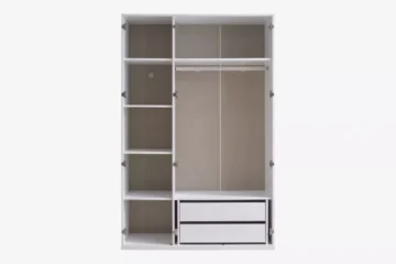 Tridelna korpus garderobna omara Simply White iz kolekcije mladinskih sob združuje minimalistično zasnovo, praktično notranjo razporeditev in kakovostno izdelavo. S svojo prostorno notranjostjo in možnostjo prilagajanja dodatkov je popolna izbira za organizacijo garderobe v mladinski sobi.