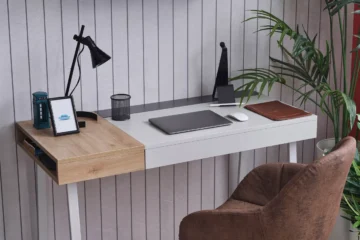 - Pisalno mizo ( Š 120 x G 55 x V 75 cm), ki nudi prostorno in organizirano delovno površino za učenje in ustvarjanje.