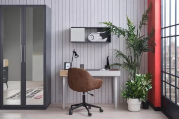 Mladinska soba PAX ponuja sodobno in funkcionalno zasnovo, ki združuje belo in antracit barvo z dodatkom lesenega dekorja. Izdelava sledi visokim standardom kakovosti TS EN (E1) in je certificirana s certifikatom kakovosti UKS. Materiali vključujejo melaminsko prevlečene iverne plošče z debelino od 18 mm do 25 mm za osnovne dele in 8 mm za zadnji del, zagotavljajoč vzdržljivost in enostavno vzdrževanje.