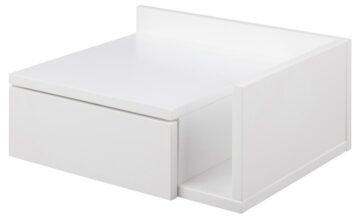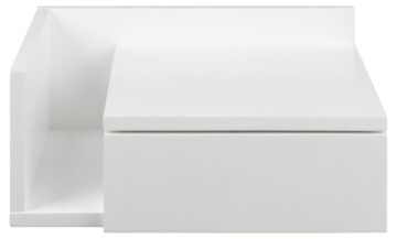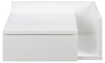 Nočna omarica Ashlan prinaša minimalističen in čist dizajn, ki bo zlahka dopolnil vsako spalnico. Izdelana iz belega UV-lakiranega MDF, ta omarica ponuja predal z gladkim odpiranjem na kovinskih vodilih ter odprt predal, ki je idealen za shranjevanje manjših predmetov in revij. Njena zasnova omogoča montažo na levo ali desno stran postelje, na želeni višini, kar zagotavlja izjemno prilagodljivost in praktičnost.