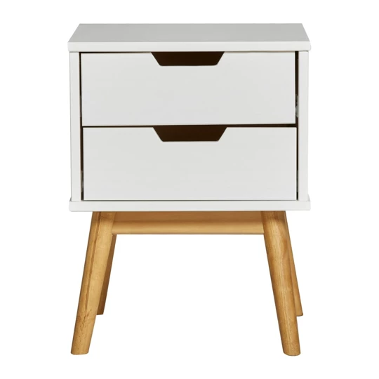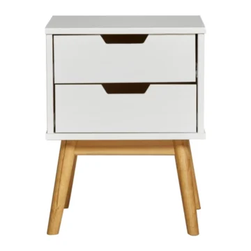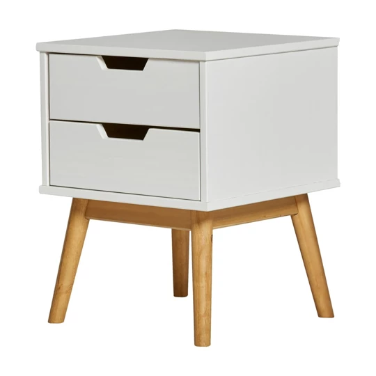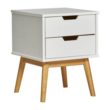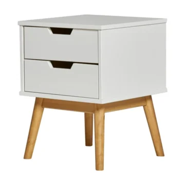 Kompakten kos pohištva iz masivnega lesa, primeren za različne bivalne prostore. Izdelek je izdelan iz masivnega bora z mizno ploščo in konstrukcijo iz masivnega lesa, dopolnjujejo pa ga predali za praktično shranjevanje. Površina je obdelana z belilom in voskom, kar poudari naraven videz lesa v beli barvi.