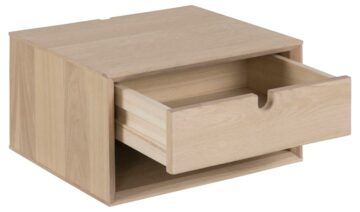 Nočna omarica Century sodi med tiste klasične nočne omarice, čigar dizajn nikoli ne zastari. Nočna omarica je izdelana iz visokokakovostnega furniranega hrasta, ki pa je predhodno tretiran s skrbno izbranim belo pigmentiranim oljem. Nočna omarica ni samo lepa in izdelana iz kvalitetnih materialov, pohvali se lahko tudi s kar možnostjo dveh dimenzij in opcijo postavitve na zid.