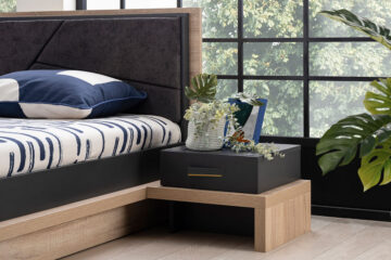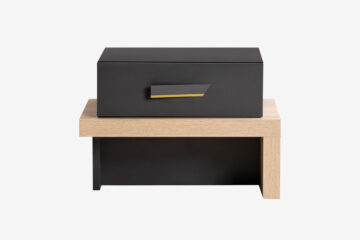 Narejena iz 25 mm debele iverne plošče, preoblečene z melaminom, nočna omarica City ponuja izjemno trpežnost in enostavno vzdrževanje. Melaminska obloga ne samo da ščiti površino pred obrabo in praskami, temveč tudi zagotavlja čist in sodoben videz, ki se harmonično ujema s toplimi barvami lesa in estetiko celotne kolekcije City.