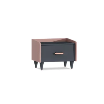 Nočna omarica Gracia je zasnovana z namenom, da spalnicam doda eleganco in prefinjenost. S svojim elegantnim in modernim dizajnom, kjer se pastelno roza toni prepletajo s temnimi odtenki, ta nočna omarica združuje minimalističen slog z izbranimi detajli. Zlat ročaj na predalu in tanke linije prinašajo pridih prefinjenosti, ki vaši sobi zagotavlja tako estetski kot funkcionalni element.