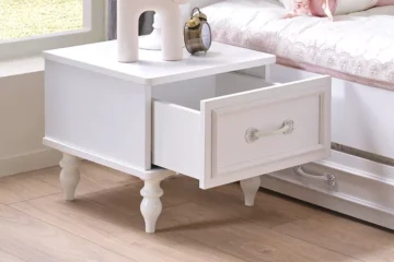 Nočna omarica Julija združuje vrhunske materiale in prefinjen dizajn, ki dodata praktičnost in stil vsaki otroški ali mladinski sobi.