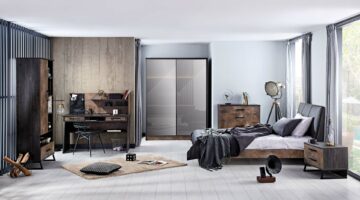 Nočna omarica Kozmos je avtentičnega in elegantnega videza. Prefinjeno spaja temnejše nianse z ostrimi linijami, zaščitenimi z ABS robnim trakom. Predala delujeta na mehanizem tihega zapiranja. Izdelana je iz iverne plošče in kovine, iz katere ima izdelane nogice in ročaja.