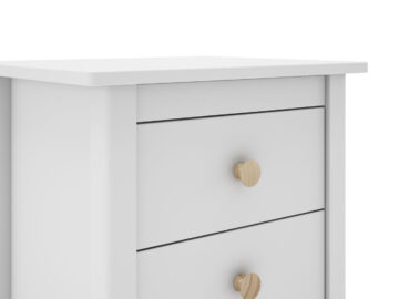 Nočna omarica Max, na voljo v dveh različicah in dveh barvah, je prilagodljiv in stilski dodatek za vsako spalnico. Izdelana iz trpežnega borovega lesa, ta nočna omarica ponuja izbiro med dvema modeloma: z dvema ali tremi predali. Poleg tega sta na voljo dve barvni možnosti – klasična bela in sodobna petrol green, ki omogočata usklajevanje z različnimi notranjimi slogi.