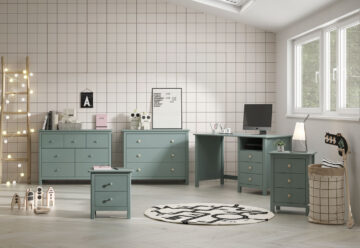 Borov les zagotavlja dolgotrajno uporabo in odpornost, medtem ko izbrana barva – bodisi bela ali petrol green – dodaja estetsko vrednost. Bela barva je čista in nevtralna, kar omogoča enostavno kombiniranje z drugimi kosi pohištva, medtem ko petrol green prinaša moderen in edinstven pridih v prostor.