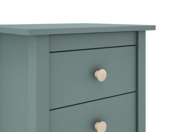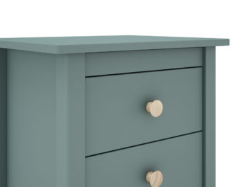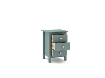 - Nočna omarica s tremi predali 3DR: Večja različica nočne omarice s tremi predali nudi dodaten shranjevalni prostor, kar je idealno za tiste, ki potrebujejo več prostora za organizacijo in shranjevanje. Trije predali omogočajo boljšo organizacijo in dostopnost shranjenih predmetov. Ta model je prav tako na voljo v beli ali petrol green barvi, kar dodaja vsestranskost pri ujemanju z obstoječim pohištvom. Dimenzije: Š 46 V V 65 X G 35 cm