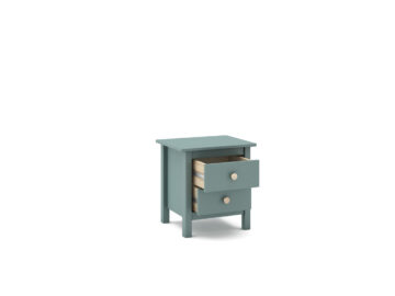 - Nočna omarica z dvema predaloma 2DR: Ta različica nočne omarice je idealna za tiste, ki potrebujejo kompaktno shranjevalno rešitev ob postelji. Dva predala nudita dovolj prostora za shranjevanje nočnih potrebščin, kot so knjige, očala, mobilni telefoni ali manjši predmeti. Ta model je na voljo v beli ali petrol green barvi, kar omogoča, da se omarica lepo vključi v različne dekorativne sloge. Dimenzije: Š 46 V V 49,5 X G 35 cm