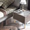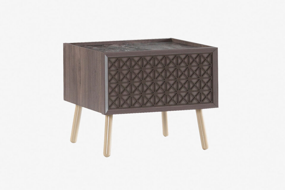 Nočna omarica iz kolekcije Venera je zasnovana kot eleganten in funkcionalen dodatek k mladinskim sobam, ki združuje sodobno oblikovanje z visoko praktičnostjo. S svojo barvno shemo v sivi, rjavi in črni barvi, obogateno z izjemnimi dekorativnimi vstavki, ta nočna omarica ne samo da ponuja priročno shranjevalno rešitev ob postelji, ampak tudi služi kot izstopajoč dekorativni element.