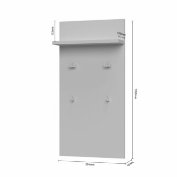 - (ŠxVxD): 55x100x17 cm, kar omogoča, da se obešalna stena prilega različnim prostorskim razmeram in ne zavzame preveč prostora, hkrati pa zagotavlja dovolj prostora za obešanje.