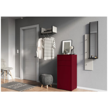 Obešalna stena Madeo Red je del predsobnega pohištva Germania. Je v barvi kašmirja in vsebuje polico za odlaganje stvari in drog za obešanje oblačil. Za dodatno varnost poskrbijo ABS robovi.