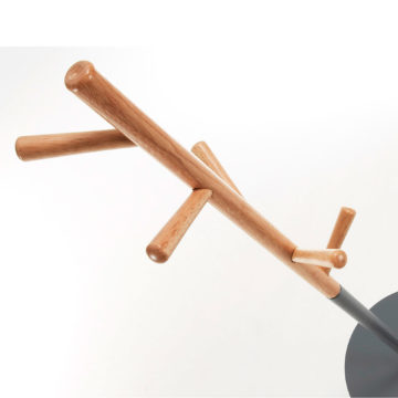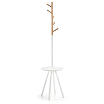 Lakirani obešalnik Bren je izdelan iz masivnega lesa kavčukovca in MDF plošče. Ima še praktično mizico za odlaganje drugih predmetov. Dobavljiv je v črni in beli različici.