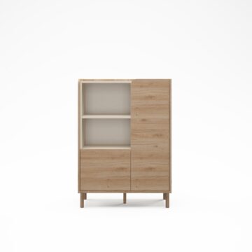 Komoda Monza v dekorju svetlega hrasta prinaša brezčasen videz in praktično shranjevanje v dnevni sobi, predsobi ali pisarni. Z elegantnimi vrati in odprtimi policami omogoča urejeno organizacijo vaših predmetov, medtem ko visoke noge zagotavljajo zračen in sodoben videz.