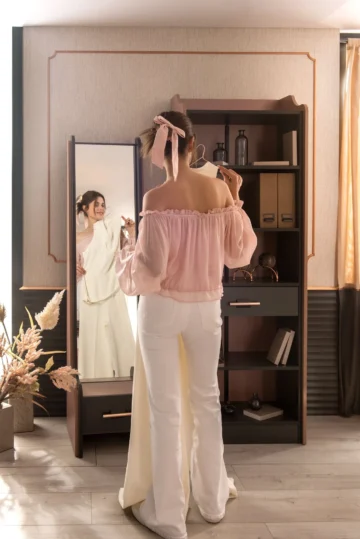 Ogledalo Gracia s svojim nežnim, pastelno roza odtenkom in zaobljenimi stranicami v prostor vnese prijeten občutek.