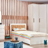 Ogledalo Happy je sicer mišljeno kot dopolnilo istoimenski komodi, a lahko stoji tudi samostojno. Je minimalističnega videza in ima praktične police. Izdelano je iz iverne plošče E1 kakovosti, z robovi zaščitenimi z ABS robnim trakom, in stekla.