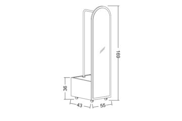 Ogledalo z obešalnikom na kolesih iz kolekcije Ana predstavlja inovativno in praktično rešitev za sodobne otroške in mladinske sobe. Ta kos pohištva združuje funkcionalnost ogledala z dodatkom mobilnega obešalnika, kar omogoča večnamensko uporabo in enostavno premikanje po prostoru.