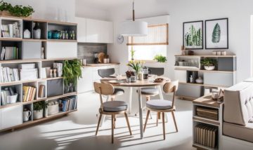 Jedilna miza Balance je sestavljena iz belega podnožja in okrogle plošče, katere videz bogati furnir od hrasta. S pomočjo minimalističnega in naravnega videza se bo brez težav prilagodila številnim zasedbam pohištva. Njen videz je izjemno kontrastičen glede na sodoben in inovativen istoimenski pohištveni sestav. Kolekcija Balance nudi uporabnikom popolno svobodo pri sestavljanju in izbiri. Njegova posebnost se kaže v prostem pozicioniranju brez uporabe žebljev*. Kot substitut za žeblje uporablja protidrsne nalepke, ki preprečijo morebitne nevarnosti. Poljubne postavitve se lahko dopolnijo s kompatibilnimi pripomočki za organiziranje in razvrščanje predmetov, ki barvno in oblikovno dopolnjujejo elegantne sestave.