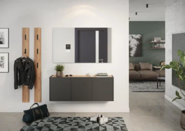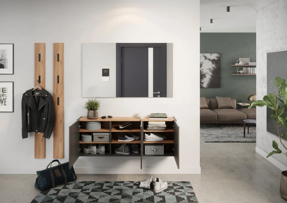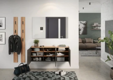 Kompaktna rešitev za shranjevanje v manjših prostorih, ki nudi dovolj prostora za vsakodnevne predmete ter s svojo svežo estetiko dopolni sodobne predsobe.