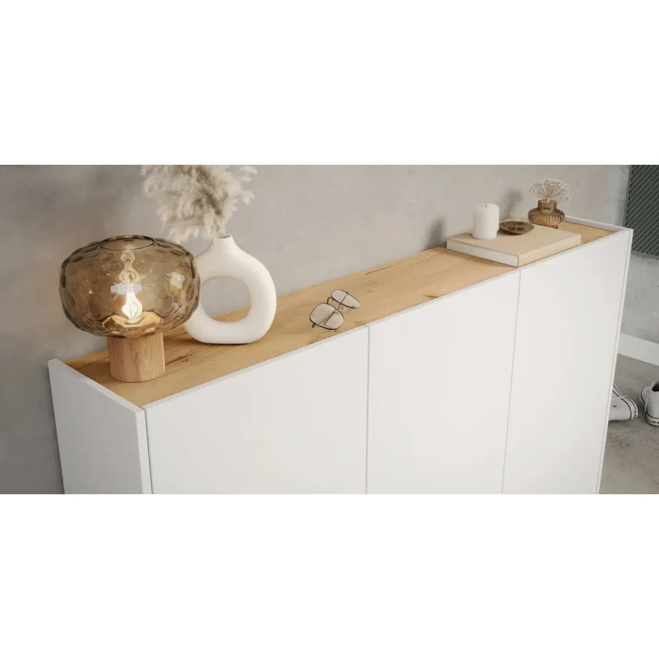 Omarica Libbiano združuje funkcionalnost in sodoben videz v kompaktni obliki, primerni za hodnike in predsobe. Zaradi kombinacije bele barve in dekorja hrasta Navarra se enostavno vključuje v različne sloge notranje opreme.