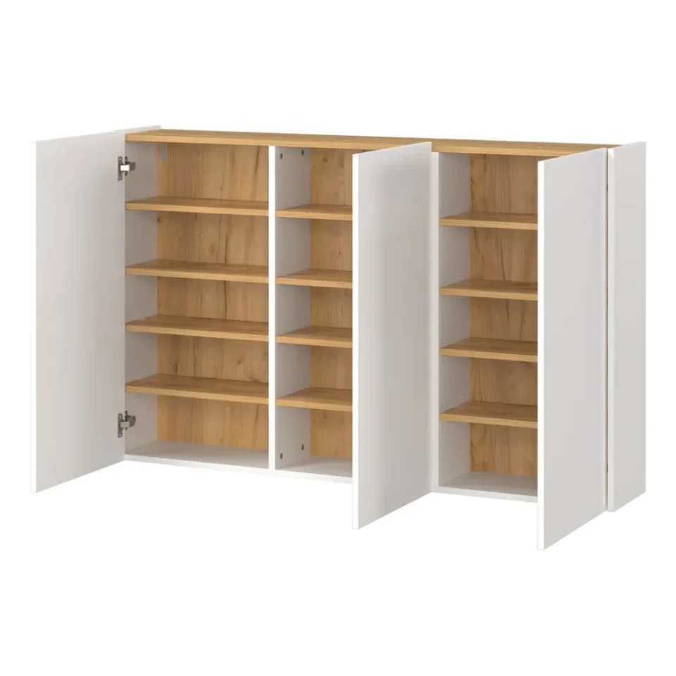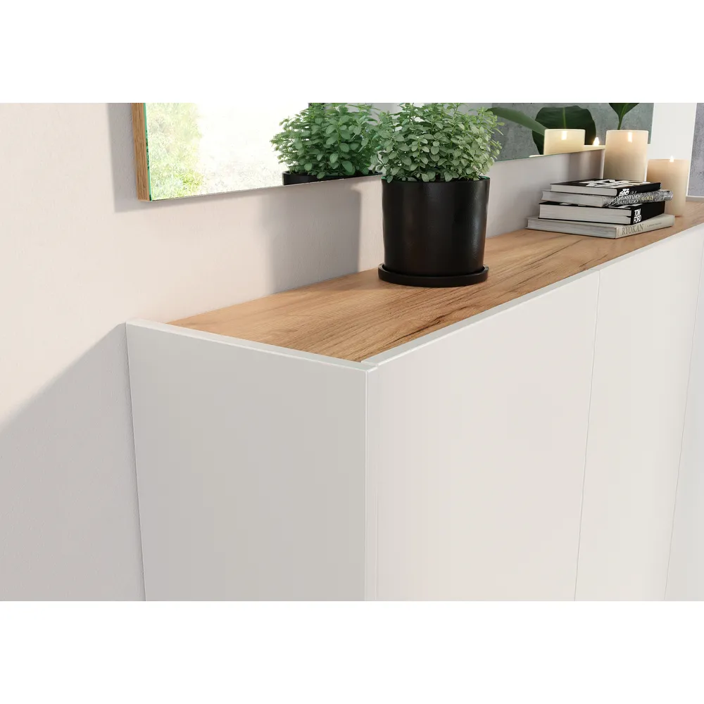 Omarica Libbiano združuje funkcionalnost in sodoben videz v kompaktni obliki, primerni za hodnike in predsobe. Zaradi kombinacije bele barve in dekorja hrasta Navarra se enostavno vključuje v različne sloge notranje opreme.