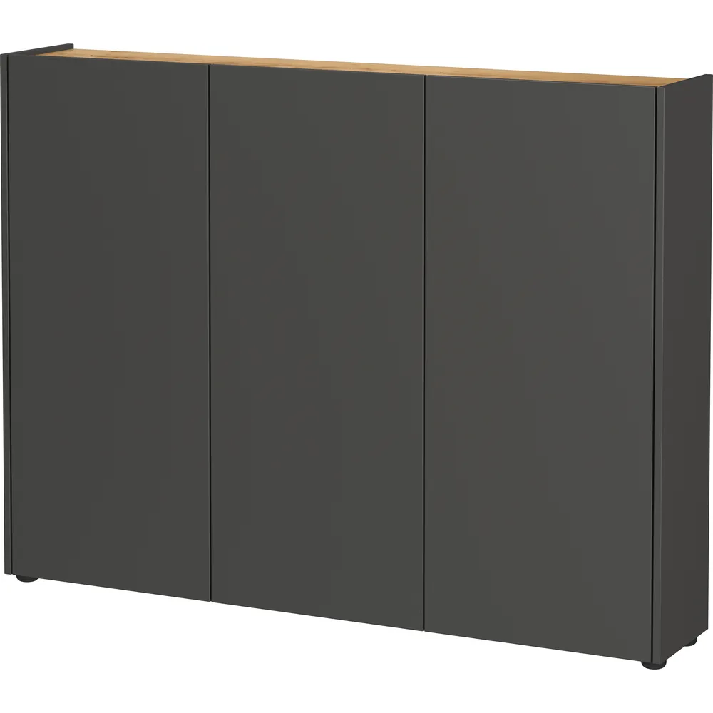 Omarica Libbiano združuje funkcionalnost in sodoben videz v kompaktni obliki, primerni za hodnike in predsobe. Zaradi kombinacije grafit barve in dekorja hrasta Navarra se enostavno vključuje v različne sloge notranje opreme.