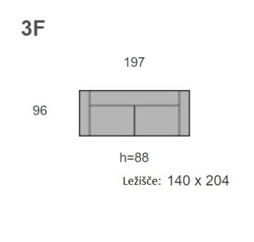 - 3F trosed 197 x 96 x 88 cm Ležišče 140 x 204 cm