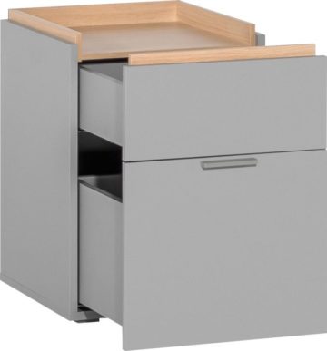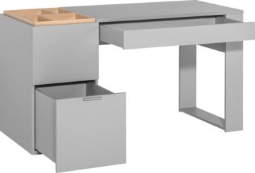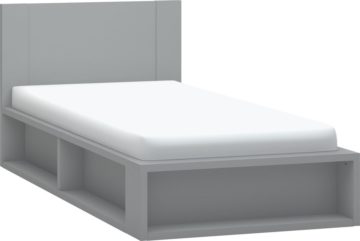 Sestav je dobavljiv z manjšo ali večjo posteljo. Narejen je iz oplemenitene iverne plošče, ki je zaščitena z melaminsko zaščito bele ali svetlo sive barve.Vsa vrata in predali se mehko zapirajo. Sestav vključuje (dimenzije: dolžina x globina x višina): 1.posteljo za ležišče dimenzije 90 x 200 cm ali 120 x 200 cm: