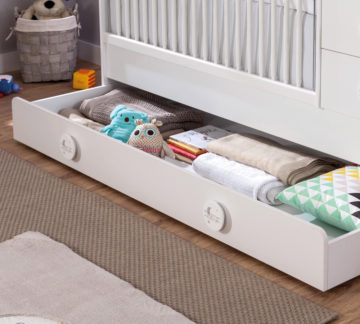 Otroška posteljica Baby Cotton ima v ceno vključeno tudi dodatno ležišče, ki se enostavno pospravi pod posteljo. Postelja ima rastočo funkcijo za naslednja leta, kar pomeni, da se lahko iz posteljice enostavno preoblikuje v enojno posteljo in dve omarici (prikazano na sliki). Primerna je za vzmetnico velikosti 80 x 180 cm. Je zaščitena z melaminom, ki je odporen zoper prask in praha.
